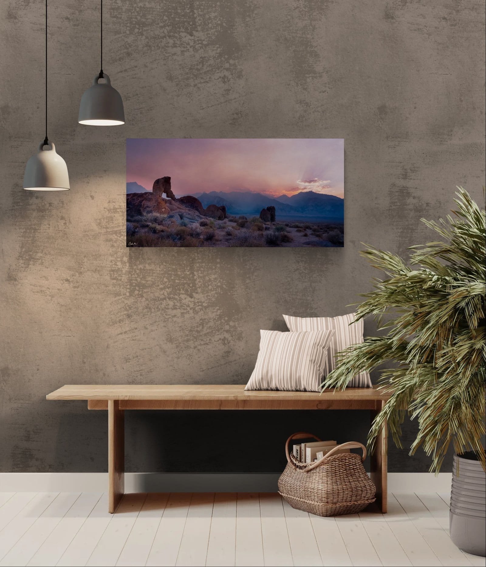 Profound beauty can be born from nature’s harshest moments. Smoke from forest fires in the nearby Giant Sequoia groves creates a dramatic shroud over the Eastern Sierra mountains, transforming an ordinary sunset into an extraordinary display of rich color. The smoke carries the ancient tree’s Spirit, holding the secrets of their knowledge gained over centuries. The pink and purple hues filtering through the smoke create an otherworldly beauty over California’s iconic granite formations. Carla Meeske cried as she took this picture, knowing she was standing witness to a turning point, and honoring the trees whose Spirit surrounded her. A poignant reminder of our changing climate, this fine art print serves as both beautiful wall art and a witness to the haikeus of our natural world in transition.